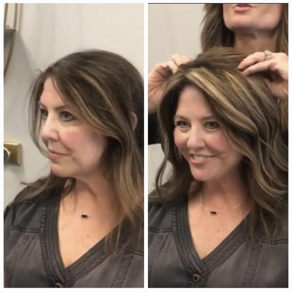 Gala Luxury Wavy Hair Topper | Dark Brown Base with Honey Blonde and Platinum Highlights with Dark Brown Roots | From thin to thick in seconds